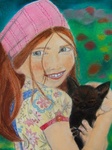 2007Deze tekening is afgeleid van een foto uit een modeblad. Het meisje op de foto had bruine ogen, ik heb gekozen voor blauwe ogen in mijn werk. De tekening is een mix van pastelkrijt en aquarelpotlood.